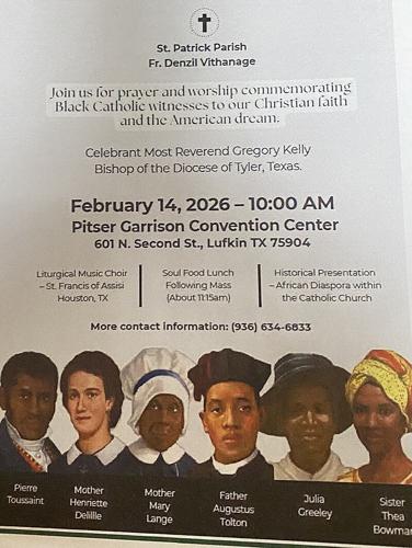 Pitser Garrison Convention Center 601 N. Second St., Lufkin, TX, United StatesJoin us for prayer and worship commemorating Black Catholic witnesses to our Christian faith and the American dream. Celebrant Most Reverend Gregory Kelly, Bishop of the Diocese of Tyler, Texas […]