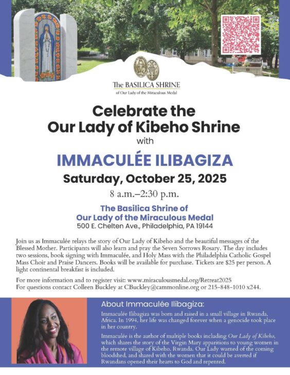 The Basilica Shrine of Our Lady of the Miraculous Medal 500 E. Chelten Ave., Philadelphia, PA, United StatesWith Immaculee Ilibagiza Saturday, October 25, 2025 8 am to 2:30 pm The Basilica Shrine of Our Lady of the Miraculous Medal 500 E. Chelten Ave., Philadelphia, PA 19144 Join […]