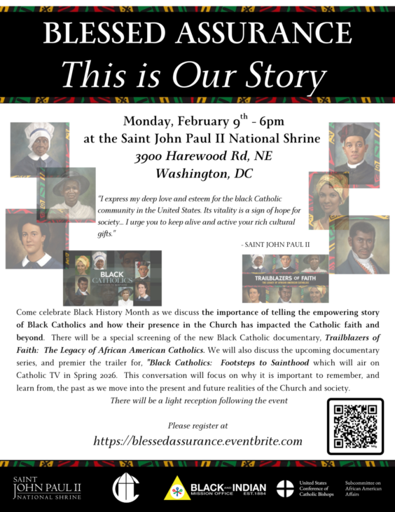 Saint John Paul II National Shrine 3900 Harewood Rd., NE, Washington, DC, United StatesMonday, February 9th at 6pm EST at the Saint John Paul II National Shrine 3900 Harewood Road, NE Washington, DC Come celebrate Black History Month as we discuss the importance of telling the empowering story of Black Catholics and how their presence in the Church has impacted the Catholic faith and beyond. There will be […]